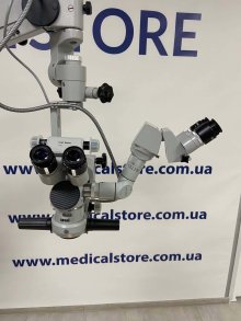 Офтальмологічний мікроскоп Carl ZEISS OPMI MD S5 з коаксіальним освітленням для червоного рефлексу, системою X-Y, педальним та ручним керуванням. Може бути оснащений нашими інженерами другим бінокуляром для роботи з помічником і відеосистемою. Це дозволяє хірургу охопити велику область під час операції з видалення катаракти. Мікроскоп поставляється в кількох варіаціях, і ця призначена для офтальмології.